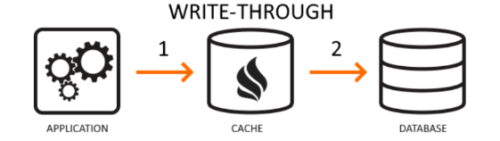 3.Write-through is a caching strategy where our application delegates database operations to the cache (similarly to the read-through cache, but for writes). Our app updates the cache, which then synchronously writes the new data to the database. This process slows the writing operation but ensures cache consistency and reliability. Developers use this strategy when consistency is a significant concern, and the application doesn’t frequently write data to the cache.