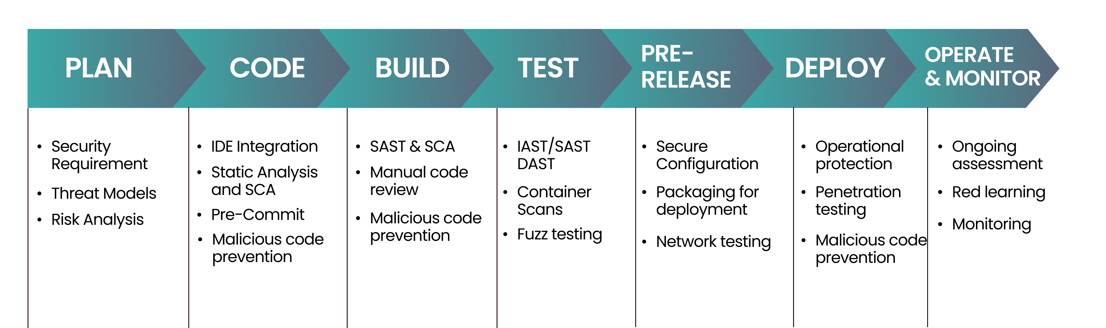 – Integrate SAST (Static Analysis Security Testing) to detect vulnerabilities in code.